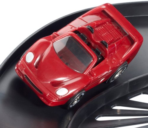 Das Spielset enthält 4 Loopings inklusive Rennwagen. Die Fahrbahnlänge beträgt 6,40 m und die Aufbaumaße sind 125 x 50 cm.