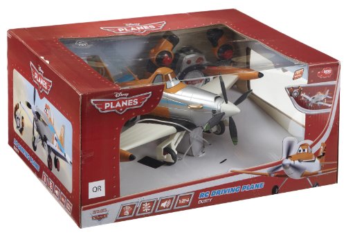 RC driving plane “Dusty” is a perfect replica of the star, he"s equipped with a dual-channel wireless RC handset and full turbo function. He comes with sound and body drift. The plane is available in a 27 and 40 Mhz frequency. 1/24 scale model. Remote (3x 1.5V LR03 AAA) Plane (3x 1.5V LR6 AA). Not included. For ages 4 and over.