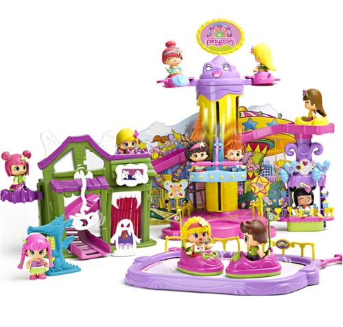 - Incluye: 3 figuras Pin y Pon, coches de choque, lanzadera, naves voladoras, montaña rusa y casa del terror.