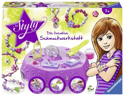 Glänzende Ketten, funkelnde Ringe oder prachtvolle Armbänder! Mit So Styly, der kreativen Schmuckwerkstatt, gelingt es leicht bezaubernde Schmuckelemente herzustellen und zur eigenen Schmuckkollektion zu kombinieren. Alles was man dazu benötigt, ist im Set enthalten. Die leicht formbare, lufttrocknende Modelliermasse und die besonderen Modellierformen garantieren ein perfektes Ergebnis.