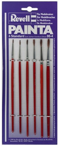Die Technik des Farbauftrags!; Die Farbe kann in drei verschiedenen Techniken aufgetragen werden: Mit dem Pinsel, mit der Spraydose oder mit einer Spritzpistole (auch Airbrush oder Spray Gun genannt).; Revell Painta Standart sind Qualitätspinsel, indieser geblisterten Verpackung 6 Stück sortiert in den Größen 00-4.