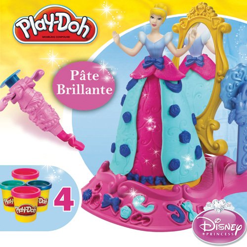 Créer la robe de bal de Cendrillon est maintenant possible grâce à la Robe Magique de Cendrillon ! Il faut préparer Cendrillon pour le bal, vite vite ! L"enfant choisit la couleur de la pâte, puis, en utilisant le rouleau, le motif de la robe apparait ! Une fois la robe positionnée sur Cendrillon, il faut maintenant la décorer ! Pour cela, l"extrudeur permet de créer des rubans! Cendrillon tourne sur elle-même pour permettre à l"enfant d"être à l"aise lors de sa création et pour que Cendrillon puisse se contempler dans le miroir ! Contient : 3 accessoires et 3 pots de pâte aux couleurs scintillantes. – Une pâte à modeler extra souple à l"odeur d"amande douce vanillée.- Stimule l"imagination et la créativité de l"enfant- Contient du blé et n"est pas destinée à être mangée