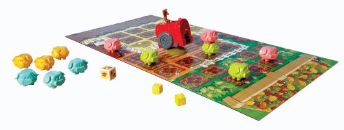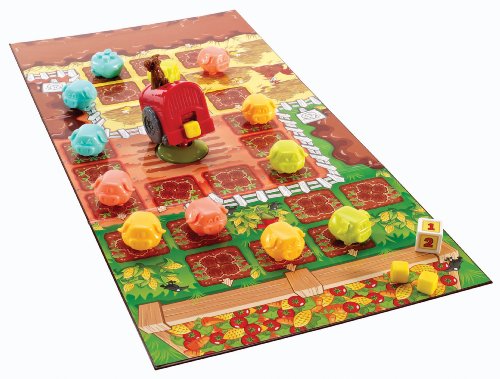 Porcellini alla riscossa è un gioco da tavolo molto divertente: un gruppo di porcellini deve correre per raggiungere la mangiatoia in fondo al campo e mangiare tanta frutta e verdura fresca. Ma attenzione alle balle di fieno volanti lanciate dal lupo cattivo: se lo colpiscono, il porcellino è costretto a tornare nella pozza di fango! Il primo giocatore a portare tutti i propri porcellini in salvo vince la partita!