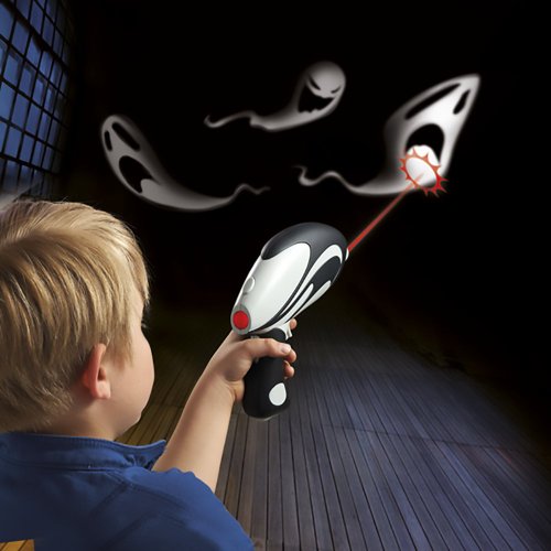 Turn down the light and prepare yourself for a scary adventure . Billy Bones sees dead people… Or more accurately, his skull projects ghosts on the walls, the ceiling, high and low, ahead and behind… everywhere. Help billy out by shooting them with your laser gun–he’ll scream every time you zap one. The game has three levels, so you can control how long you have to shoot each ghost, and your gun will count up how many you hit. Who will bust the most ghosts and win the game?