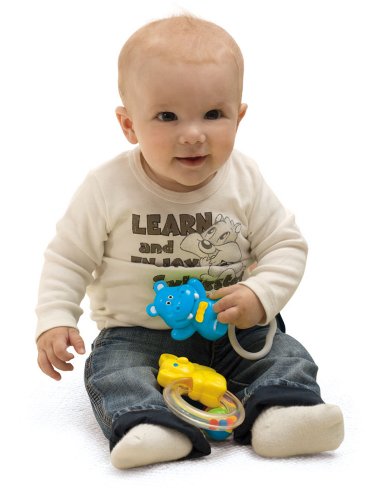 Un vasto assortimento di colorati sonagli per stimolare lo sviluppo del bambino e le sue facolta'.