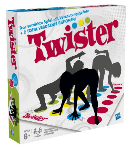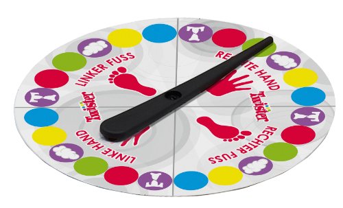 Das beliebte Spiel mit Verknotungsgefahr: Setze deine Füße und Hände auf die bunten Punkte der Matte, die die Drehscheibe vorgibt. Jetzt mit zwei neuen Elementen auf der Drehscheibe. Verlierst du den Kontakt zur Matte, scheidest du aus.Ab 6 Jahren. Spieleranzahl: 2 – 4