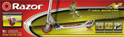 The Razor A2 is built of aircraft-grade aluminum, a sturdy material that holds up to use and abuse through the years. Razor combined the traditional aluminum construction, however, with a number of recent innovations, including a springless shock system that makes bumpy pavement feel smoother than ever and an all-new wheelie bar that guarantees an extra dollop of fun. Add in the foldable T-tube and deck, which tuck together to create a compact footprint (ideal for carrying when riding isn't appropriate), and you have a great kick scooter for virtually any situation. Other details include an enhanced finger guard, 98 mm inline-style wheels, and a patented rear fender brake for quick stops.