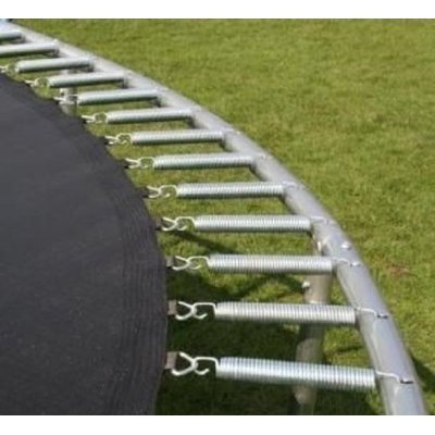 - Red de seguridad con 8 barras almohadilladaRed de alta calidad rodeando toda la superficie de salto para obtener un entorno seguro – no sólo para los pequeñoss para aumentar la seguridad – tubos de acero galvanizado extra resistentes – 88 resortes permiten alturas insospechadas
