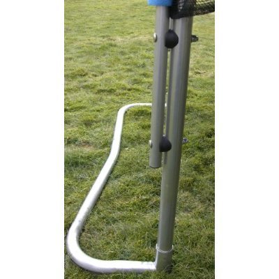 El cama elástica más seguro de su clase – El cama elástica dispone de los más nuevos y más seguros pies dobles. Con ello se reduce en mucho la posibilidad de un vuelco y consigue un asiento absolutamente seguro. Aquí se emplearon tubos de acero galvanizados extra resistentes. Las barras de soporte de la red están almohadilladas en toda su longitud para garantizar así una superior seguridad. La red de alta calidad rodea completamente el cama elástica Así se consigue una superficie de salto real de 430 cm. La red exterior de malla fina y resistente evita cualquier enganche. Una lona de salto de alta calidad resistente a la luz ultravioleta asegura una extra larga vida de uso.