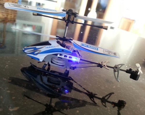 - Due eliche posteriori di ricambio e una lama principale / Sorprendenti luci multicolore sul lato della fusoliera / L'autoselezione del canale comporta che 3 modelli, indipendentemente da loro colore, possano essere pilotati contemporaneamente (non è necessario impostare manualmente)