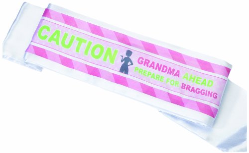 Lillian rose 68″ grandma to be sash. Grandma-to-be will look stylish for the baby shower in this white satin sash. The artwork reads: “caution. Grandma ahead. Prepare for bragging.” size: 68 inches long, 5″ wide. Also available in a mommy-to-be version.